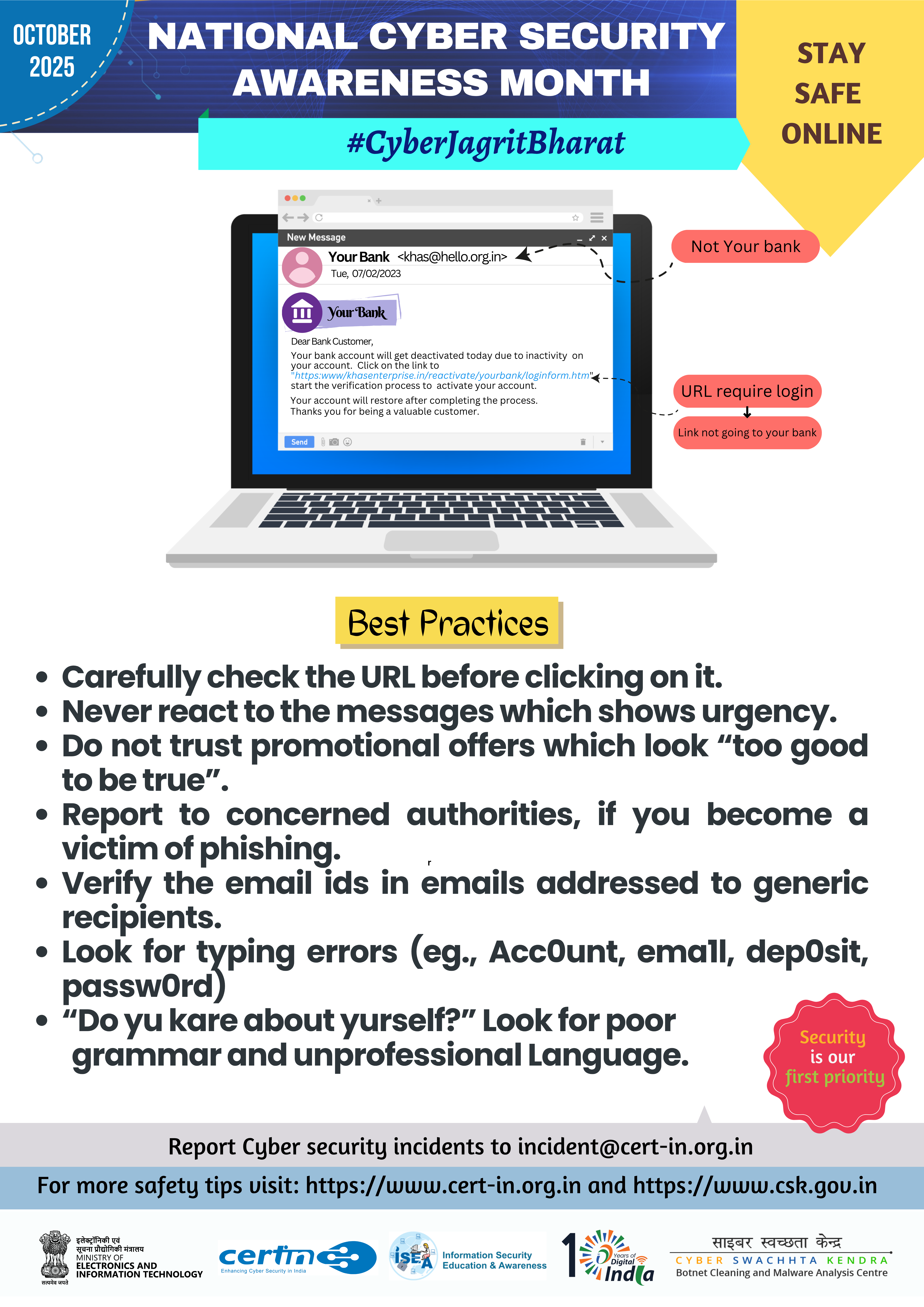 NCSAM-2025 Day-29 Safety and Security Tips / साइबर सुरक्षा युक्तियाँ